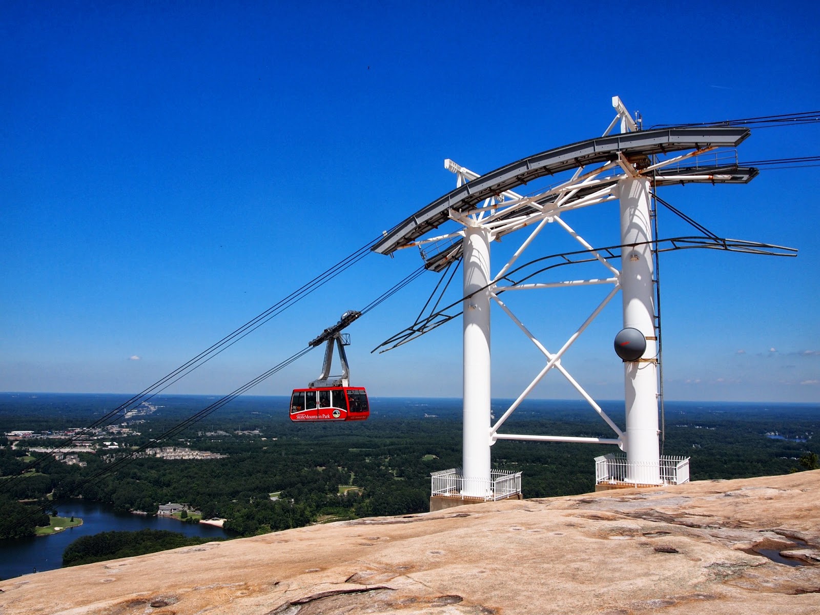 Stone Mountain 其實就是一塊巨大的石頭,在火山爆發時,上湧的岩漿受到周圍不同質地的土壤包覆,所形成的火成岩花崗石,隨著時間的推移,最後因版塊運動而冒出地面(也就是說還有很大一截在地底下),形成今日的巨大石山,遠看近看這座石山,都讓人覺得真是相當奇異而且壯觀。石山上還有一個著名的標記,就是紀念南北戰爭的巨大浮雕,刻著南北戰爭時,南軍首領李將軍跟他的隨從,逢週末晚上還會有打在石山壁上的雷射燈光秀。園內還有一個 Memorial Hall,也是在講述南北戰爭歷史的紀念館。